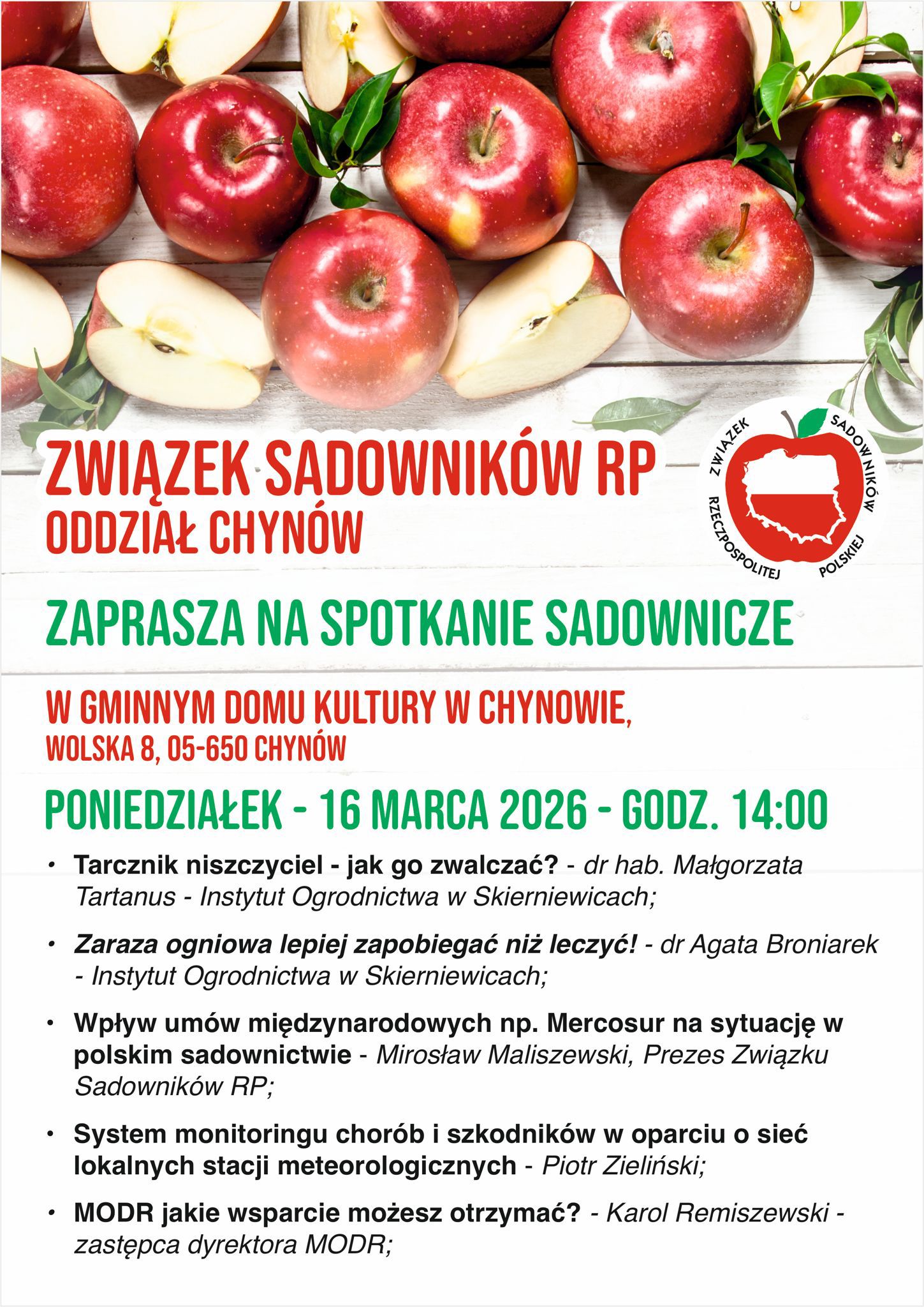 Serdecznie zapraszamy wszystkich sadowników oraz osoby zainteresowane tematem. Warto być i wspólnie rozmawiać o przyszłości naszego sadownictwa.